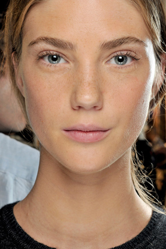 Pele fresca com cara de já nasci assim, um pouco de blush e sobrancelha levemente marcada.
